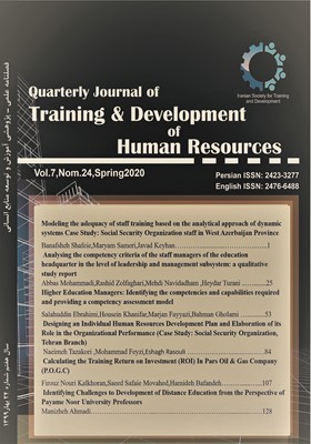 The study is of the basic-applied research type that uses a combined exploratory research method. The study population is comprised of 16 human resources development experts and social security organization’s managers in the qualitative section and 351 staff members working in social security organization as the study sample volume in the quantitative section. Purposive sampling was the method of choice in the qualitative section and simple randomized sampling was utilized in the quantitative part. The data collection instrument was semi-structured interviews in the qualitative section and Heresy and Goldsmith’s organizational performance questionnaire and a researcher-constructed human resources development questionnaire in the quantitative section. To analyze the data in the qualitative section, use was made of NVivo11 in the qualitative section and SPSS19 was employed in the quantitative section. The data analysis method included a qualitative grounded theory method (open, pivotal and selective coding) and Pearson correlation and simultaneous regression in the quantitative section. The study results resulted in the formation of an individual HR development pattern in the qualitative section for Tehran’s social security organization; in the quantitative section, the effect of the pattern on the organizational performance was investigated and the results signified the positive effect of the individual HR development on the organizational performance. The present study’s findings can offer applied and operational implications in line with individual HR development and organizational performance improvement in social security organization.